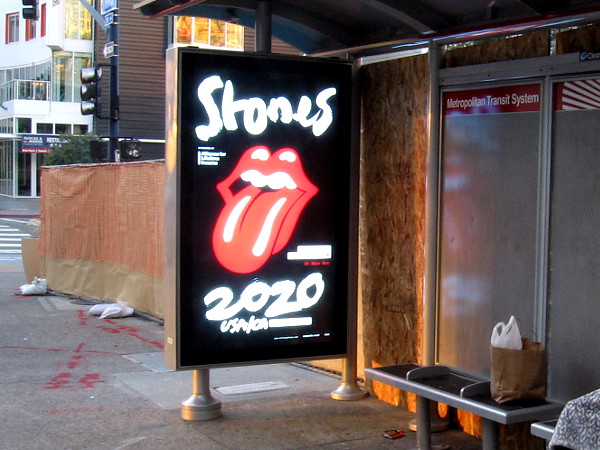 Walking about downtown’s Gaslamp Quarter this morning, I saw that Rolling Stones banners have been hung on many street lamps. Very cool! The classic rock band’s new tour will take them to a handful of select cities in North America, and possibly South America.
