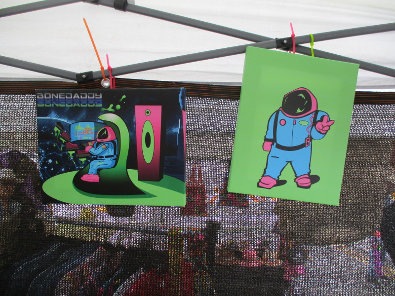 The art is by graffiti artist Unity. It appears that a toothy octopus is enjoying a bowl of rice!