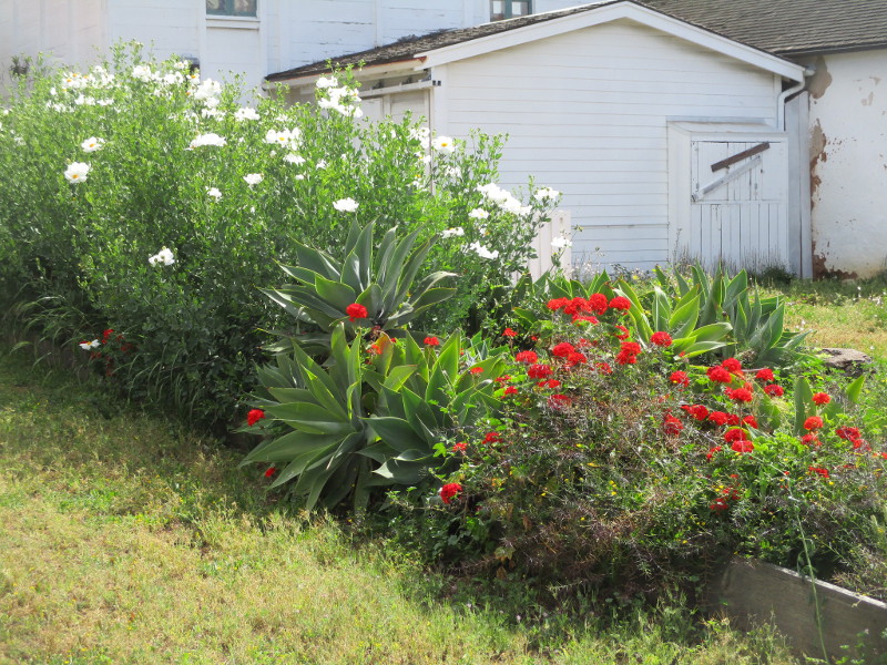 Most people visiting Old Town San Diego State Historic Park will not see the spring flowers now blooming in one beautiful but scraggly garden. That’s because the garden is a bit hidden, located near a walking path that is seldom traveled.