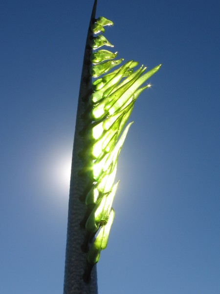 This sculpture was originally part of an Urban Trees bayside art exhibit some years ago. A few remain on display here and there along the bay and elsewhere in San Diego. In this photo, the sun is directly behind the translucent green material, making it glow!