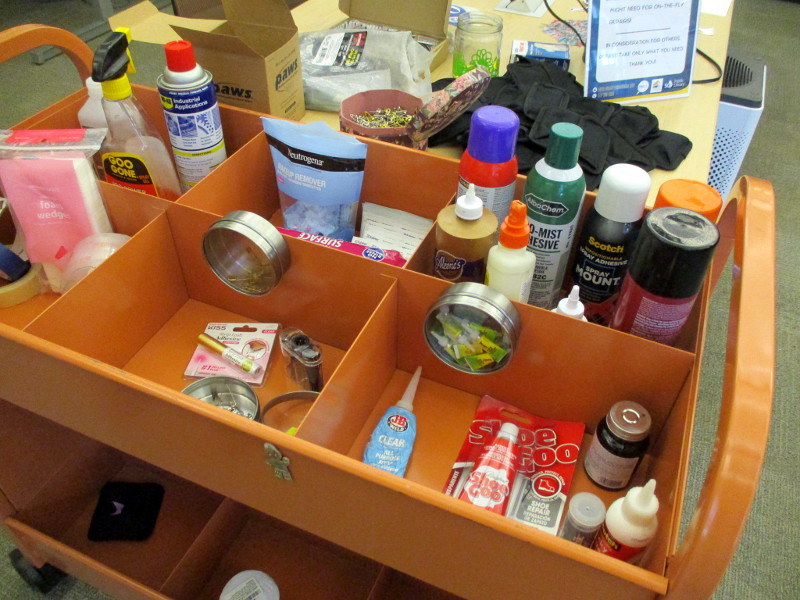 On the fourth floor of the Central Library you’ll find the Cosplay Repair Station. They have everything you could conceivably need. Sewing machines, tools, tape, different glues and adhesives, you name it!