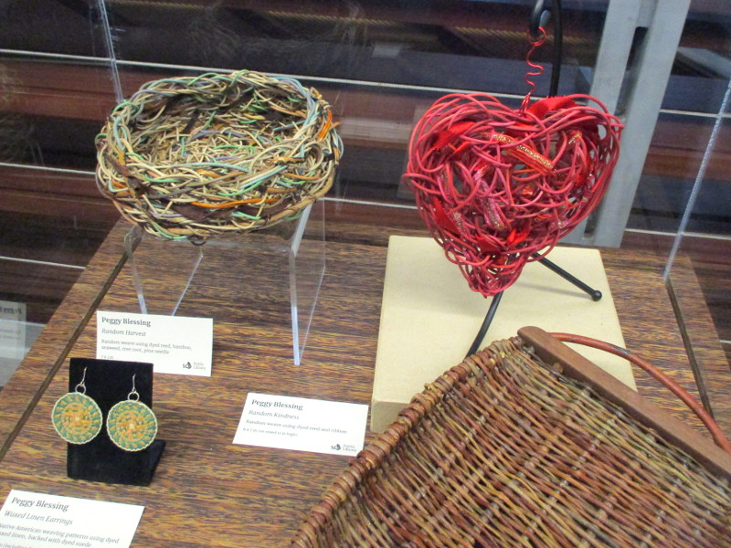 Stunning works of hand made art can be viewed in five glass display cases on the Second Floor of San Diego’s downtown Central Library. As a sign explains, the Misti Washington Gourd and Basket Guild is showcasing the variety of technique and materials used by the guild’s talented artists.