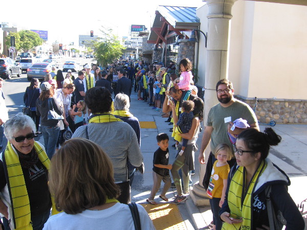 A very exciting and historic event took place this morning in Mission Hills! Hundreds of people lined the West Washington Street sidewalk to pass books from the old, now closed Mission Hills Branch Library to the beautiful, larger, brand new Mission Hills-Hillcrest/Harley & Bessie Knox Library!