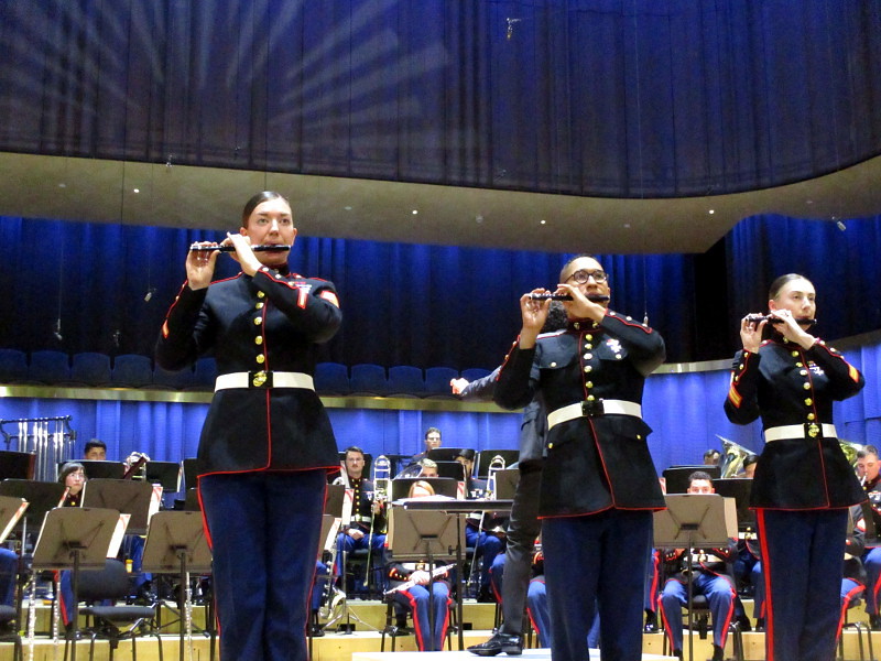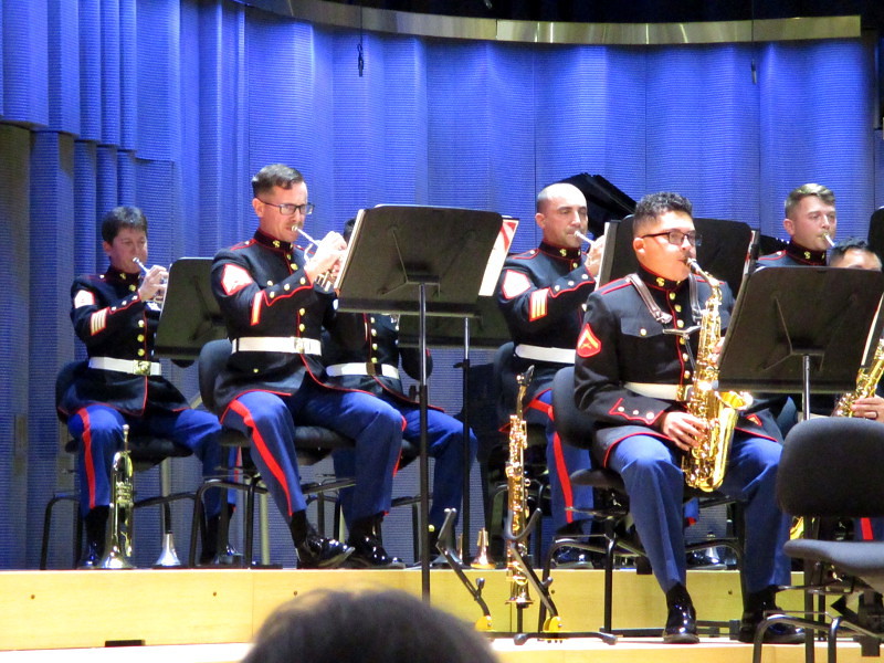 The 1st Marine Division Band played a variety of symphonic pieces, including Let Freedom Ring by Ryan Nowlin, Colonial Song by Percy Grainger, and an amazing, very energetic Slava! by Leonard Bernstein.