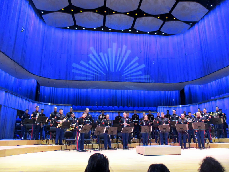 After craning my head this way and that to take in the renovated stage, seating and other features of the historic venue, I settled down to enjoy a very fine hour-long performance by the 1st Marine Division Band out of Camp Pendleton. San Diego Symphony President and Chief Executive Officer Martha Gilmer, in her introduction, stated that the group is one of the finest military bands in the United States.