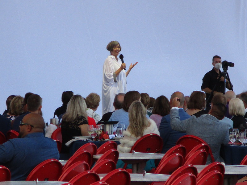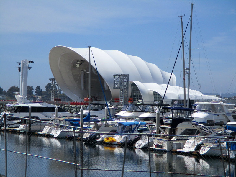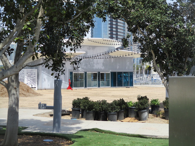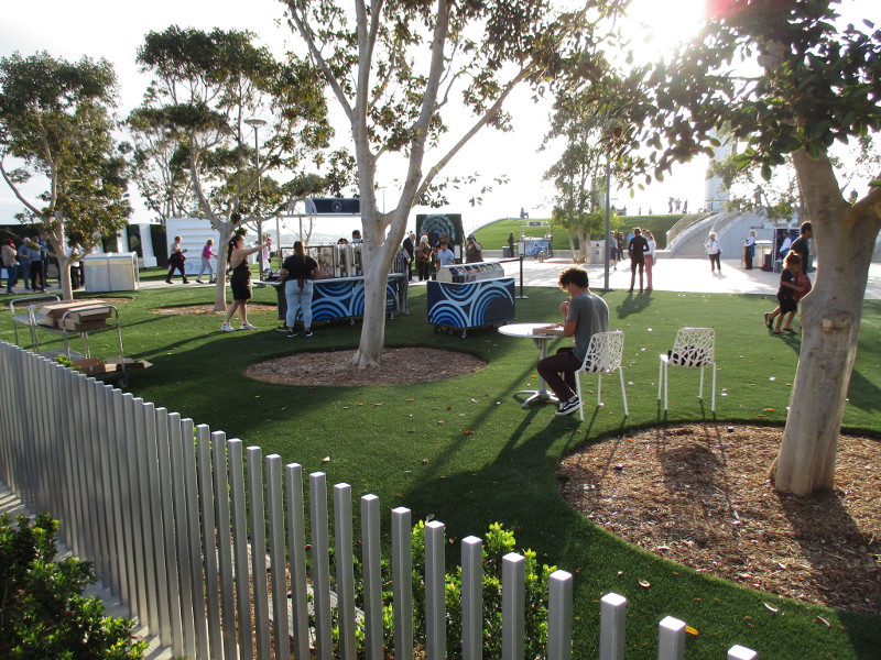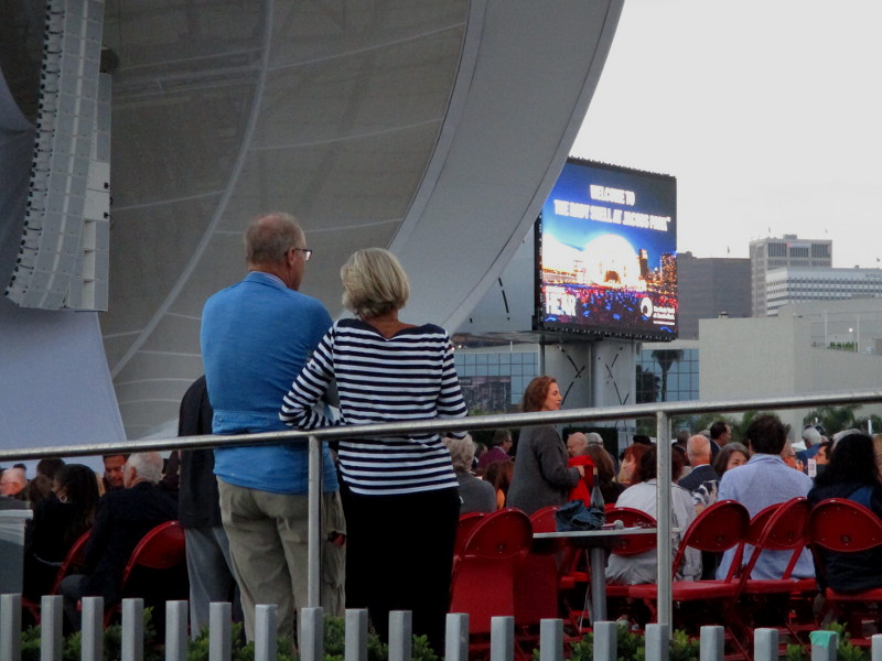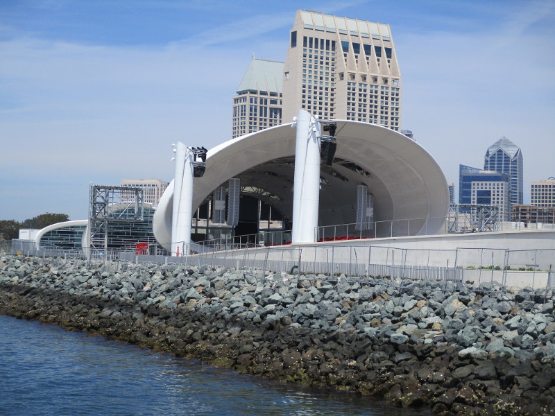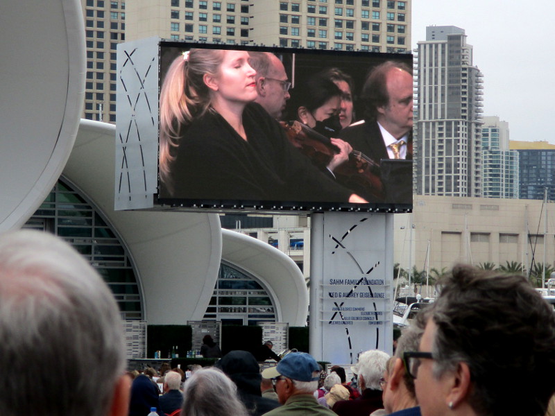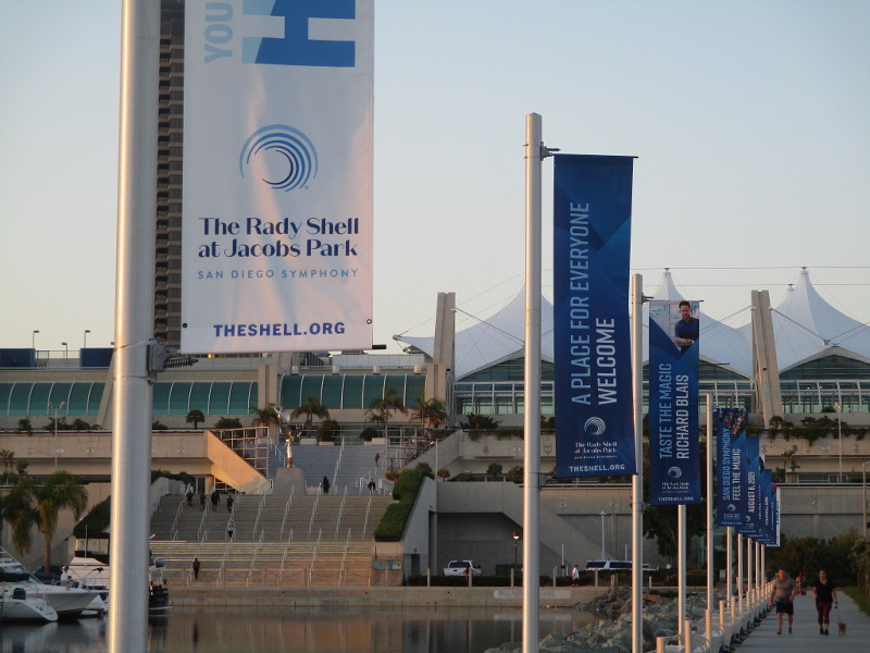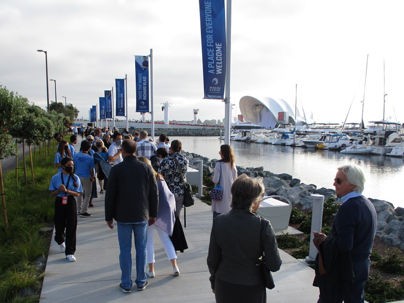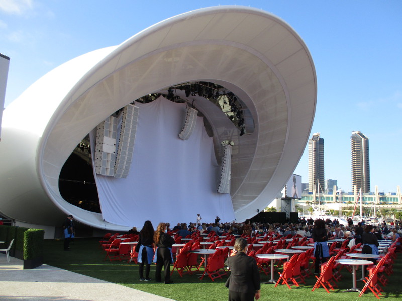 Today I happened to be walking by the San Diego Symphony’s outdoor Rady Shell at Embarcadero Marina Park South, when I noticed a crowd had gathered at tables right up close to the stage.