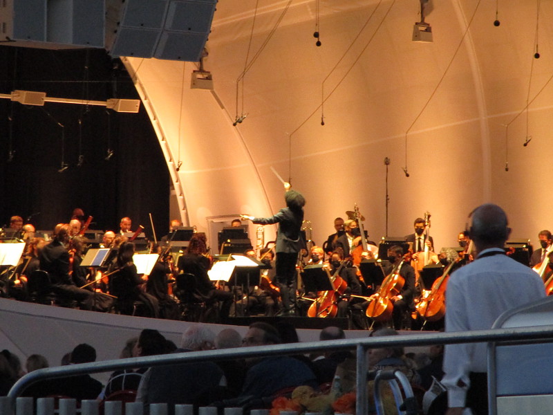 Smiling ladies at a San Diego Symphony table indicated a rehearsal was about to begin, and said I could sit in front! Because during open rehearsals at the Rady Shell, anybody can!