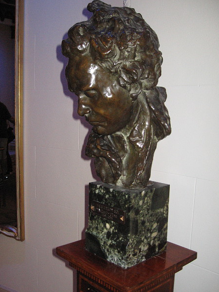 Visitors check out historical photos of the Fox Theatre movie palace on a wall near the San Diego Symphony box office.Guide from the San Diego Symphony provides some background before a behind-the-scenes tour of Copley Symphony Hall.How the Fox Theatre appeared almost a century ago. A modern 34-story skyscraper, Symphony Towers, was built around it in 1989. The new building’s parking levels were constructed directly above the old theatre!The Fox Theatre was the most elegant place to enjoy culture in San Diego for decades. Countless concerts, shows and movies have been enjoyed here by many generations.Our tour group has entered the theatre’s main lobby. Movie executive William Fox developed a popular chain of theaters in the 1920s. They featured many styles of dazzling ornamentation. At one time this was a working fountain!I learned the central face above the old fountain represents William Fox himself. Fox was born in Hungary and his parents emigrated to America. He eventually created a vast entertainment empire.A look at one amazing corner of the lobby’s dramatic ceiling.The elegant main lobby of Copley Symphony Hall in San Diego.A bust at one end of the main lobby is of the beloved German composer Beethoven.We step through a door to see what few see. We will file down through the empty theatre and through another door that connects to backstage.Heading toward backstage. I believe those stairs lead up to the rear stage door on Eighth Avenue.Behind the scenes! All sorts of interesting equipment could be glimpsed in the darkness behind the stage.I believe I see a xylophone tucked in this closet-like space!Through that rather unimpressive door is the San Diego Symphony’s elegant stage! Beautiful music requires hard work done by those who toil unseen.This is part of a comfortable rest area behind the stage for San Diego Symphony musicians. Visiting entertainers also enjoy an opportunity for relaxation.We’ve left backstage and are heading up some stairs to Copley Symphony Hall’s upper level, whose entrance is on hilly Seventh Avenue.Some rather fancy decorative artwork can be seen above the doorway that leads to Aisle 5.The interior of the theatre was too dark for my old camera to capture many good photos. After listening to a brief organ concert, our tour group prepares to exit Copley Symphony Hall’s upper seating level.One of several smaller chandeliers in the spectacular ceiling.The huge, resplendent central chandelier and those around it can be lowered on cables. This is helpful when a thousand light bulbs need replacement! In the olden days, dancing girls performed for the audience from atop this chandelier!One last glimpse. Some fun detail near the ceiling of the historic Fox Theatre, now home to the world-class San Diego Symphony.