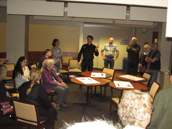 It’s the Deck the Halls Brass Quintet performing holiday music! Good times were had by local residents and businesses on one block of B Street in San Diego’s financial district.A number of nearby restaurants were serving up yummy treats for all comers. Christmas lights lit up the night!These smiling folks told me the event was put together by Clean and Safe, a service of the Downtown San Diego Partnership. Thank you guys!