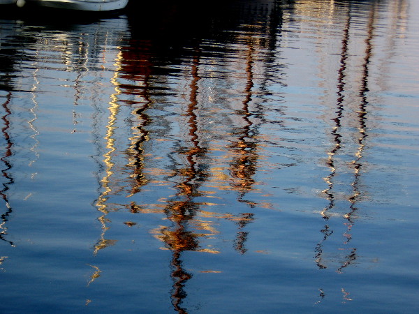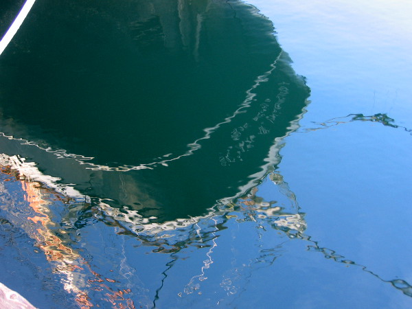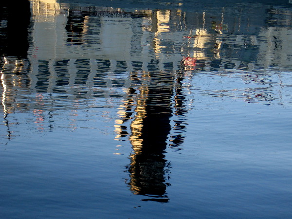 Reflection on the water of Medea, Pilot, America, San Salvador, and Californian.