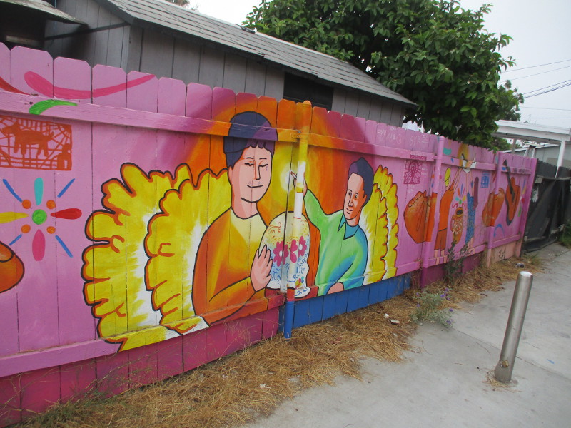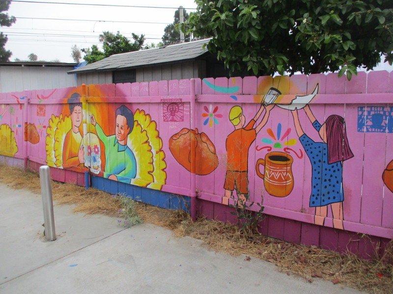 San Ysidro’s alley-like Cultural Corridor extends north along Cypress Drive from San Ysidro Boulevard to the trolley tracks near the Beyer Avenue station. Walk up it and you’ll see many colorful murals.