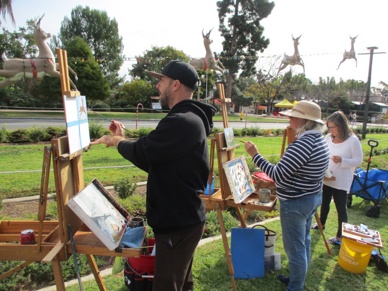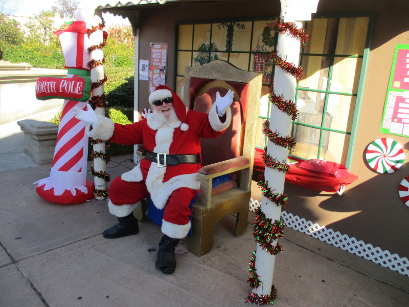 I started east across the Cabrillo Bridge this afternoon, shortly after San Diego’s big holiday festival opened. I visited the Grinch tree at the Old Globe, then entered the Plaza de Panama where there is a stage and small ice skating rink. I strolled down El Prado, took a side trip to Spanish Village, then eventually found myself at the Spreckels Organ Pavilion, International Cottages and Palisades area. You can see one fun photo near the end where I peeked inside the Comic-Con Museum.