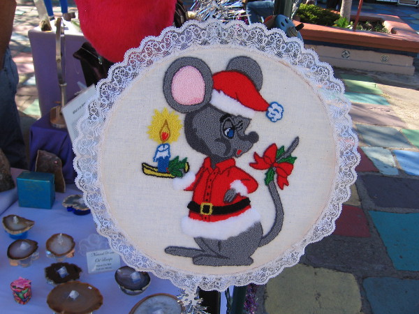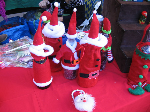 Over 300,000 people are attending December Nights this year. Surely good old Santa Claus is present somewhere in this crowd.Look! Over there! I think I see Santa wearing sunglasses! Oops. Just a vendor selling treats during December Nights.These fun (but sadly inanimate) Santas are made of beads!You guys aren’t Santa. You can’t fool me! You’re elves from the North Pole.With so many Santa ornaments and gifts everywhere, one might conclude that Old Saint Nick is actually a very astute businessman.Oh, goodness gracious! A “fan man” Santa Claus waving his arms like a silly goof! Nothing is sacred anymore.I see the image of Kris Kringle toting a sack of presents just about everywhere. So, logically, the actual guy has to be around here somewhere.I’ve seen this Santa before. He hangs out in Balboa Park every holiday season. But his sled doesn’t actually fly. It’s all a complete fake. Impostor!Tried to fool me again! That isn’t Father Christmas! It’s Snoopy!Now if Santa Claus actually looks like this, I’d really like to meet him. That would be quite an amazing experience!Multiple possible Santas! Oh, wait. They’re all cloggers, waiting to perform at December Nights. Santa only clogs chimneys.I might not spot the actual real Santa, but this December Nights is rather fun. These folks are singing their hearts out in front of the Spreckels Organ Pavilion’s annual Christmas tree. When the lights come on at night, Balboa Park becomes a magical wonderland!If Santa had a dog, it would probably dress like this. It gets chilly up north.Perhaps this is why I haven’t positively identified the real Santa Claus. He’s probably kicking back at a San Diego beach getting some sun.I’ll just have to make do with Santa Mouse.Wait! I found him! There he is! Santa!