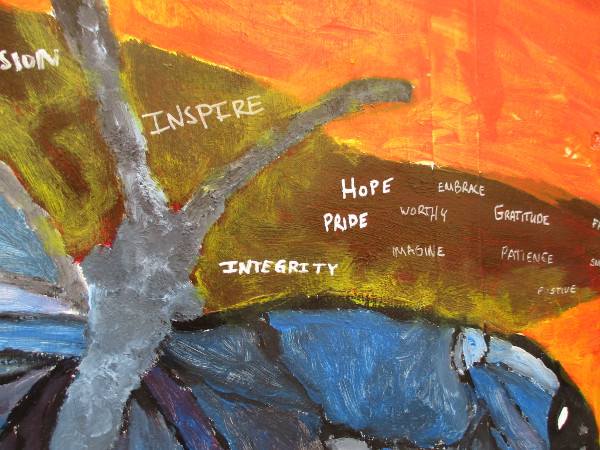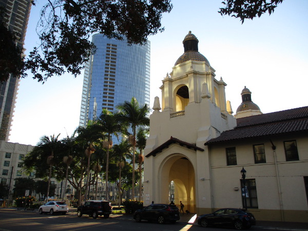 The painting in my first two photos is on the south wall. It is a 1927 view looking east toward the first and second Escondido High Schools. The huge building with a tower that looks a bit like a church with steeple was actually the first high school!