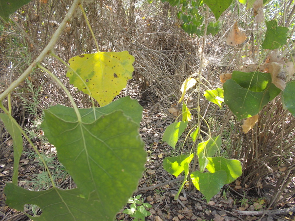 And, yes, leaves are falling. The most prominent river trees here seem to be willows, and they now appear to be mainly yellow, a burnt orange, or brown. I saw many cottonwoods turning yellow and gray, too.