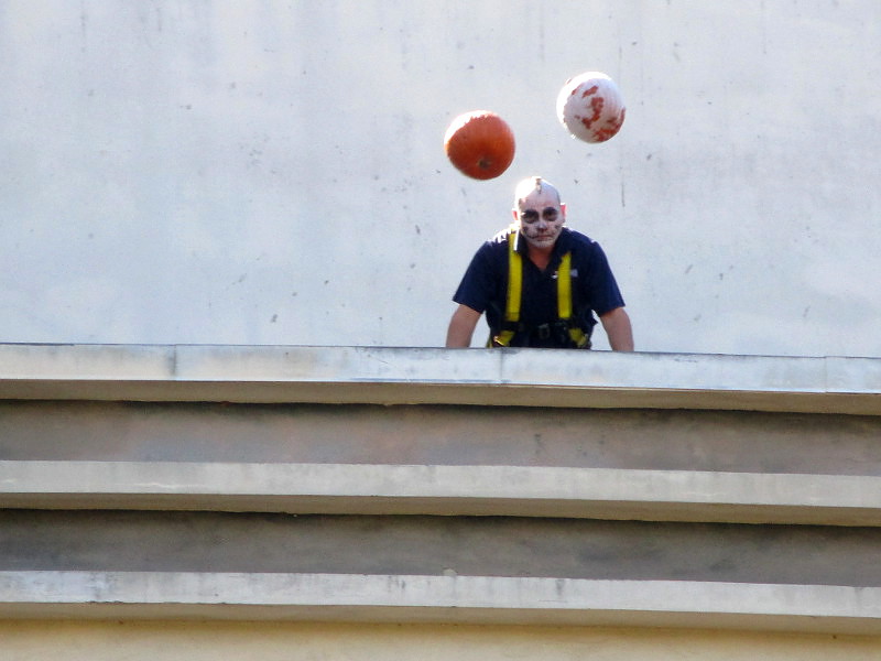 Lots of pumpkins were chucked off the roof of the San Diego Air and Space Museum today, to the delight of watching children! The event was part of the museum’s annual Halloween-themed Pumpkin Chunkin’ celebration!