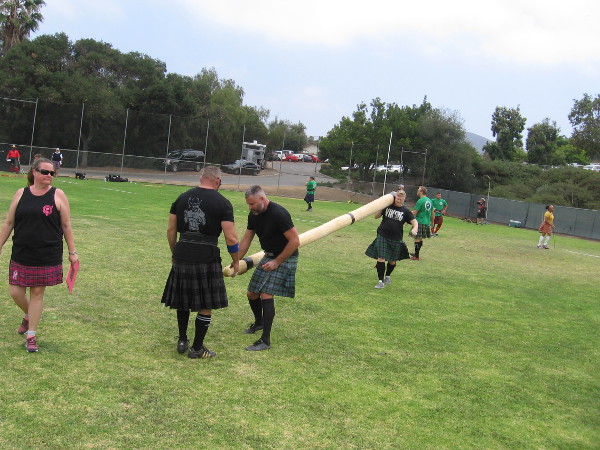 Those big wood poles are called cabers. They’re tossed with the objective of flipping them end-over-end, landing as straight as possible.