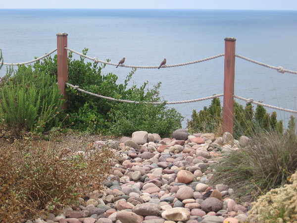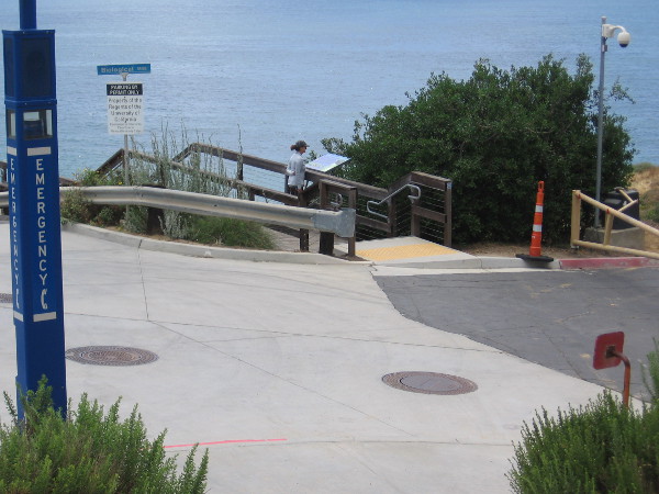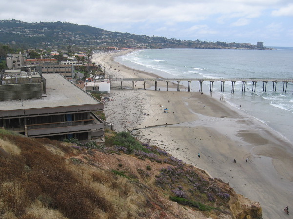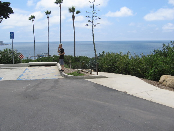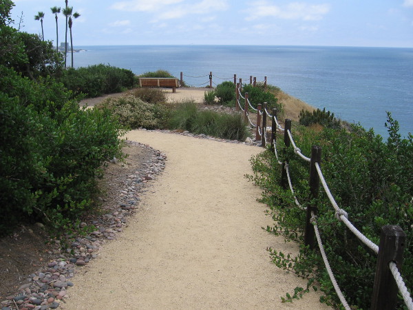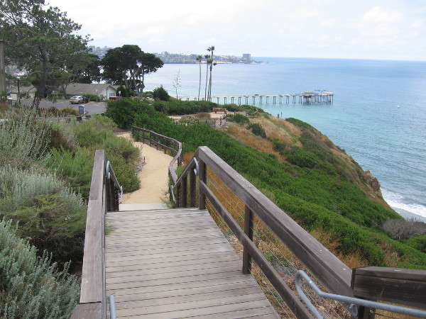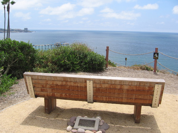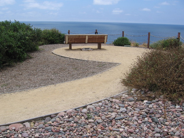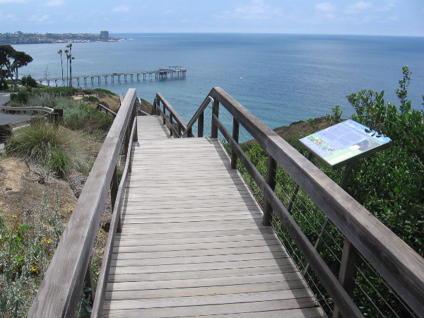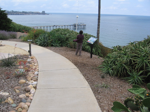The Scripps Coastal Meander coincides with a short segment of the California Coastal Trail.Starting down the trail.Moving through the Scripps Institution of Oceanography campus. Someone reads a sign ahead.Starting along a raised wooden walkway with amazing views of the Pacific Ocean.Sign describes the Scripps Coastal Meander, a publicly accessible walking route through the Scripps campus. It is part of the California Coastal Trail.A map on the sign shows the California Coastal Trail in relation to the beach, the Scripps Coastal Reserve Biodiversity Trail, Scripps Pier and La Jolla Shores.Heading down the wooden walkway with amazing views of the Pacific Ocean, Scripps Pier, and La Jolla Cove in the distance.A paraglider from the Torrey Pines Gliderport floats in the sky above a campus building.Soaring high above the beautiful coast.Looking down from the trail at native flora atop the cliffs above the beach. Dike Rock can be seen jutting through the breaking surf.Walking along on a beautiful, sunny San Diego day.A bench waits ahead.Bench overlooks the wide blue ocean.Opa’s Bench is dedicated to Arnold Krause. His journey began in Germany and ended in San Diego.Two small birds on a rope.Continuing on, I passed a student who attends world renowned Scripps Institution of Oceanography.Another sign ahead.Conserving California’s Coastal Treasures. Sign describes Marine Protected Areas. Just offshore is the San Diego-Scripps Coastal SMCA.Continuing down the path, I see something interesting to the right.A marker stands at what was the oldest known archaeological site in Southern California–radiocarbon dated in 1962–occupied by the La Jollan I Indians almost 8000 years ago.Approaching a small grassy park with a sculpture.The sculpture is Spring Stirring by world famous sculptor Donal Hord, 1948, a gift of Cecil and Ida Green in 1964.Spring Stirring, by artist Donal Hord.Starting along a narrow walkway around the perimeter of the Judith and Walter Institute of Geophysics and Planetary Physics Munk Laboratory.Looking north up the coast toward Black’s Beach and Torrey Pines State Reserve.Looking southwest at Ellen Browning Scripps Memorial Pier, which is used for ocean research by the Scripps Institution of Oceanography.Beyond Scripps Pier and Scripps Beach is La Jolla Shores and the Village of La Jolla.