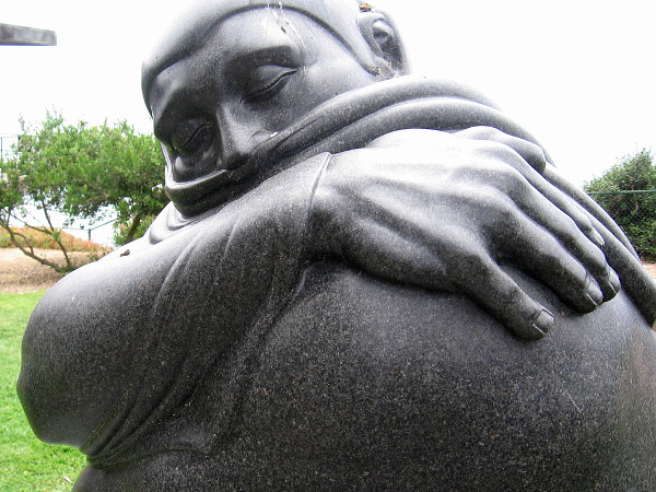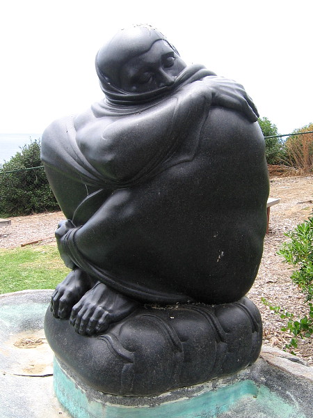 During my walk through the Scripps Institute of Oceanography on Saturday, I paused in the grassy area just north of the Judith and Walter Institute of Geophysics and Planetary Physics Munk Laboratory to admire an amazing sculpture by Donal Hord.