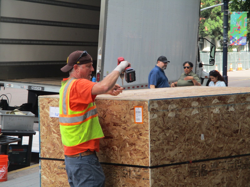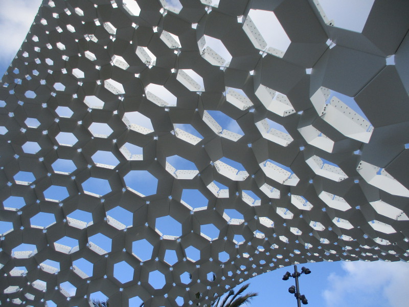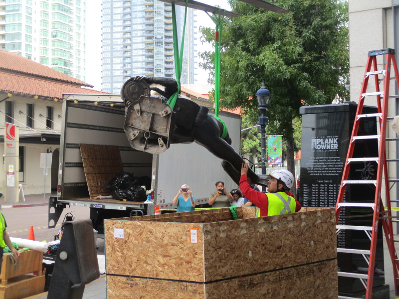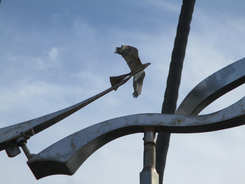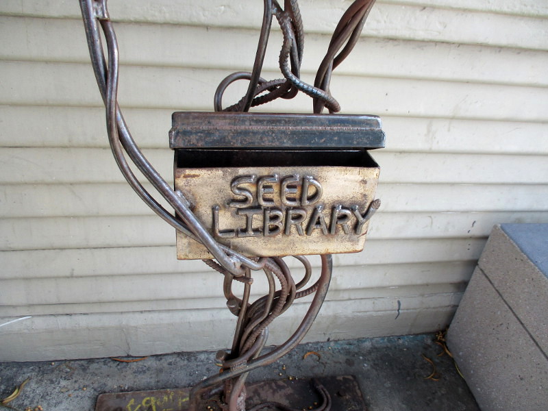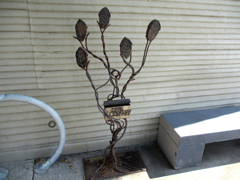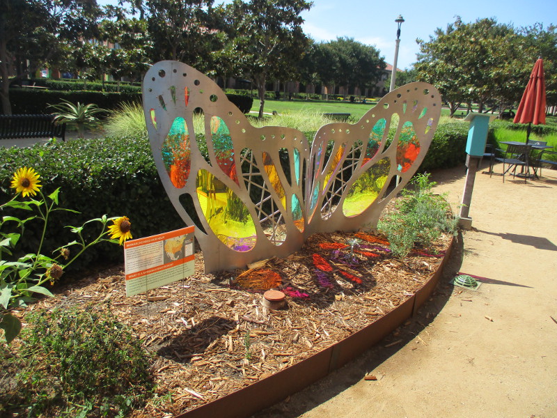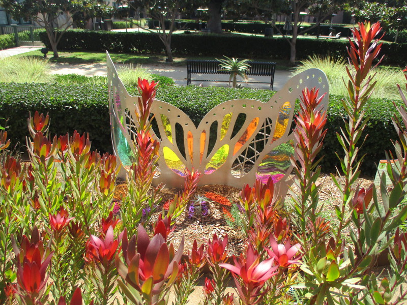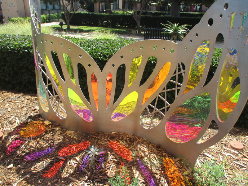 Sea Level, a mostly copper sculpture created by City College student Kim Ogburn for the 2010 Urban Trees exhibition along San Diego’s Embarcadero, depicts a kelp forest and the native marine life it sustains. Colorful fish swim beneath the imagined water; birds thrive on the surface above. Read an article concerning this amazing artwork’s creation here.