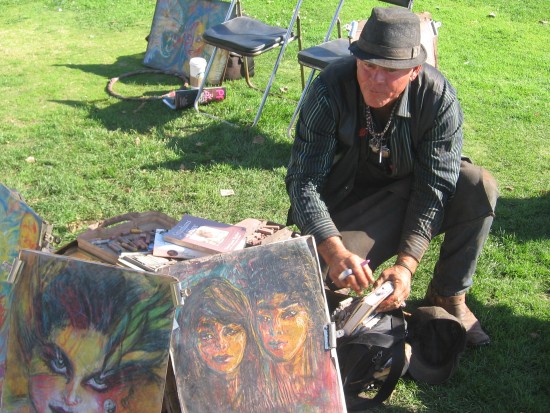 Artists abound along the Embarcadero near Seaport Village. They’ll paint a quick portrait for a modest donation. Today during my walk, I stopped for a bit to chat with Steve Mac.