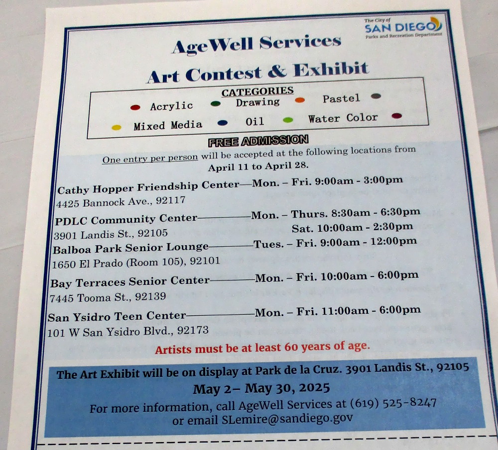 The City of San Diego will be presenting the AgeWell Services Senior Resource Fair on January 26, 2026. The free event will take place from 10 am to noon at the Park de la Cruz Community Center, which is located at 3901 Landis Street.
