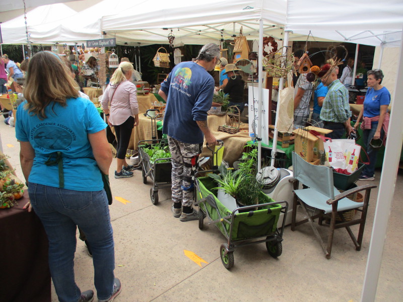 A small army of smiling Master Gardeners took over the Casa del Prado, both Room 101 and the two courtyard patios. The public could check out thousands of plants for sale, plus an art and crafts marketplace, educational booths and several master gardener speakers.
