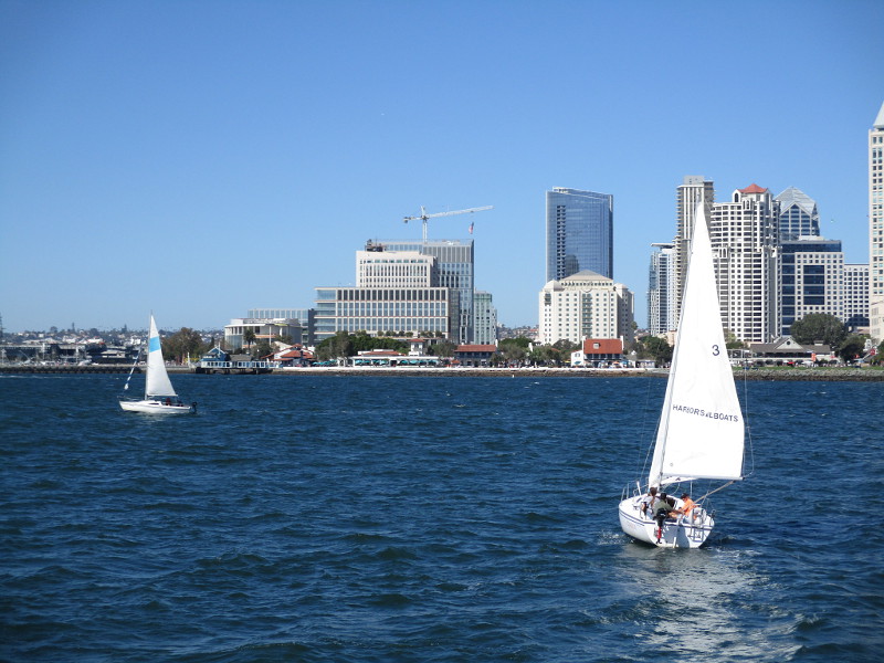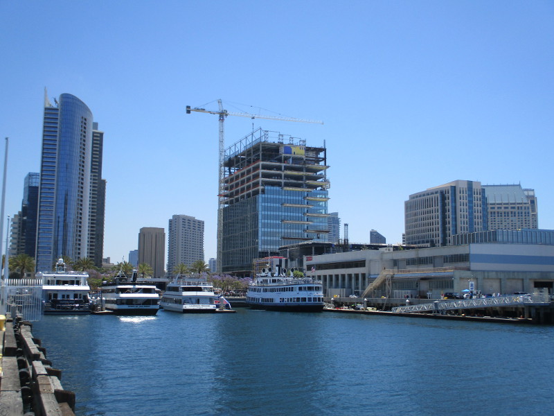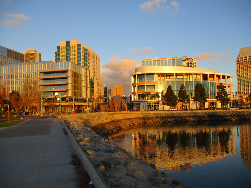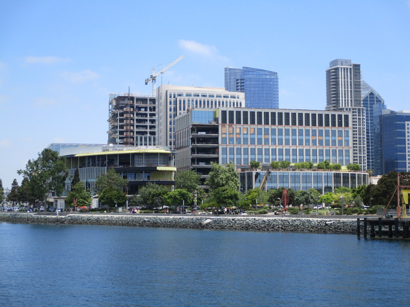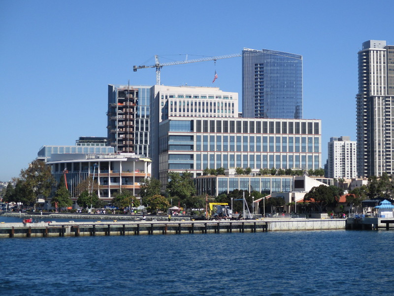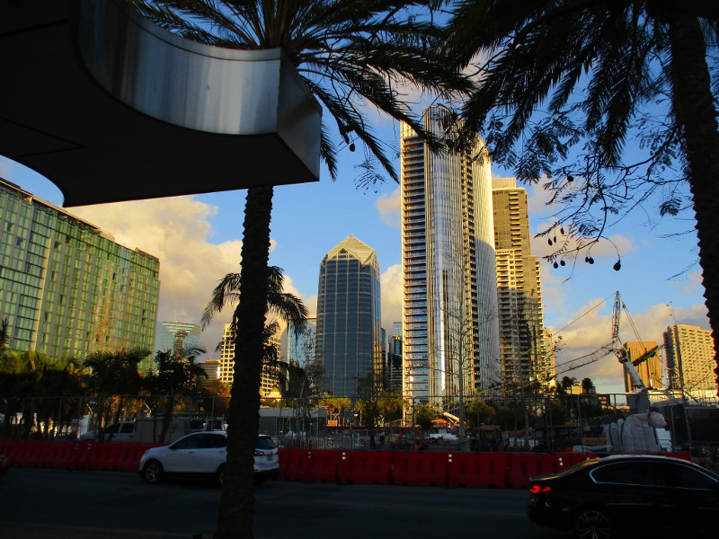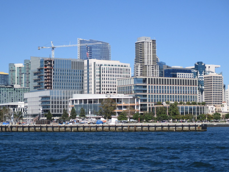 I see identifiable aspects of the present city skyline are incorporated into images, as well as San Diego Bay. Notice how certain recognizable buildings are arbitrarily positioned or weirdly altered by the artificial intelligence?