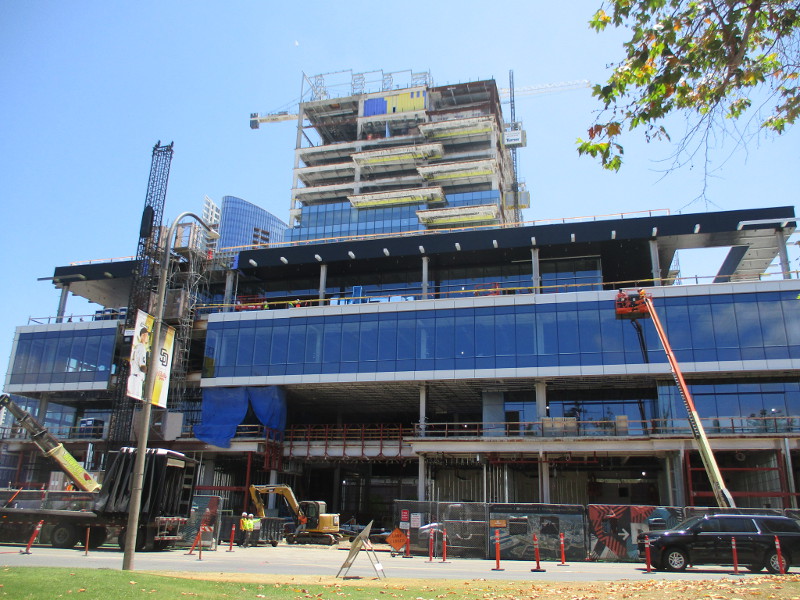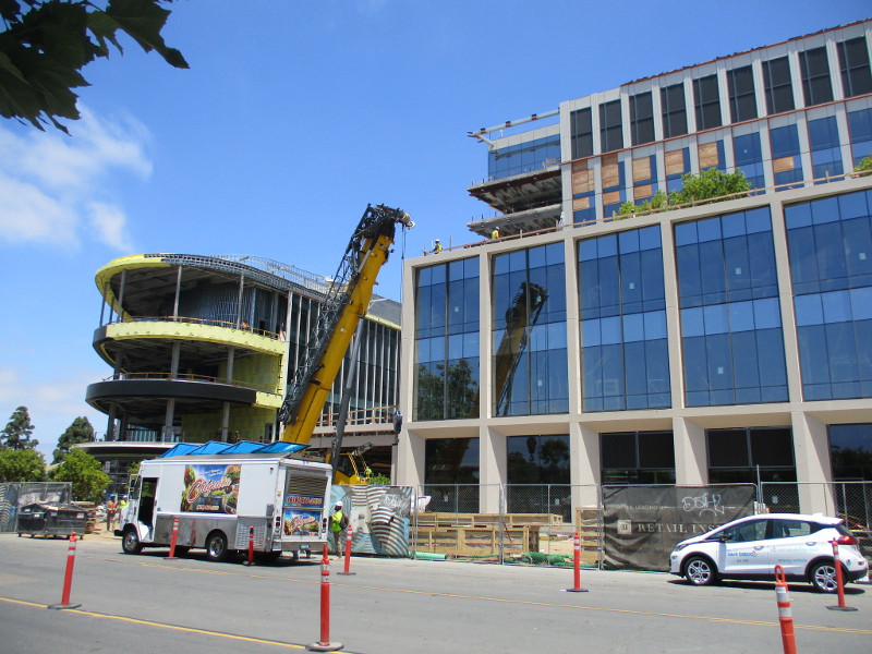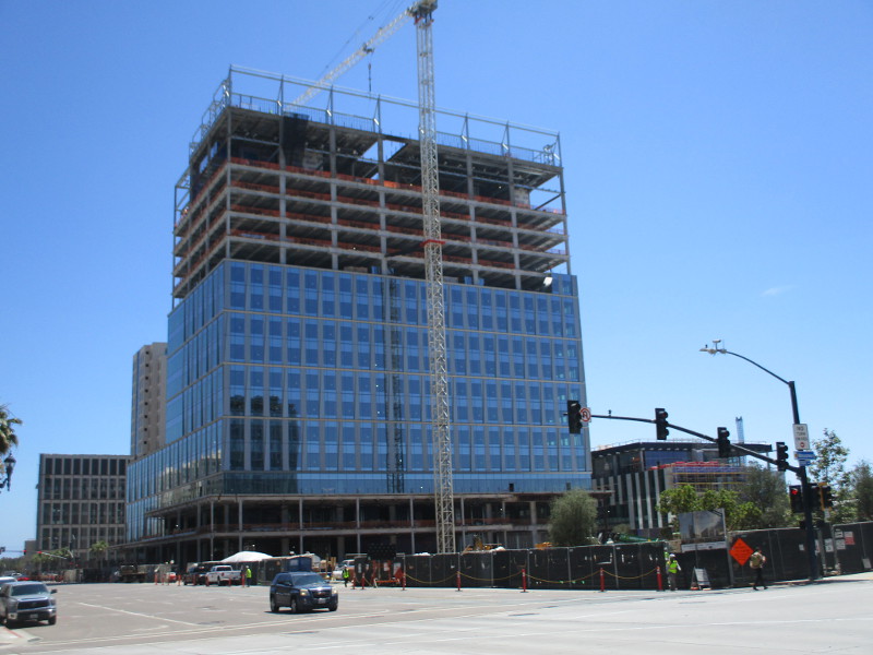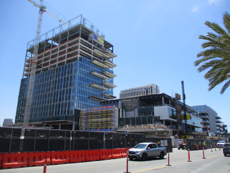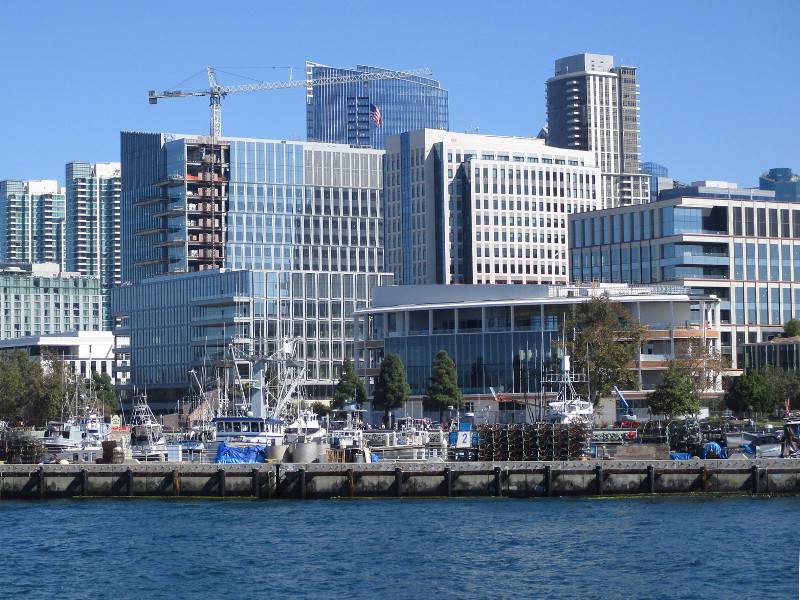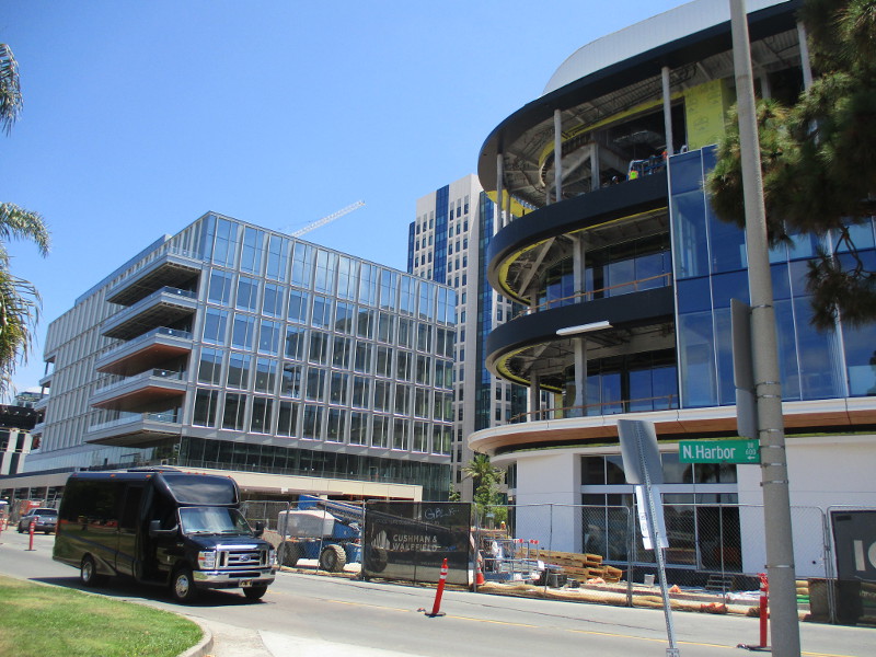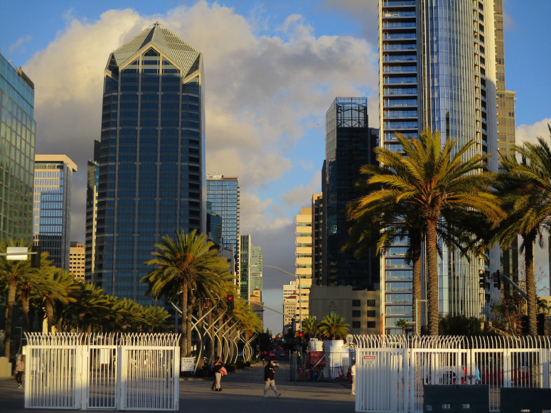 I see identifiable aspects of the present city skyline are incorporated into images, as well as San Diego Bay. Notice how certain recognizable buildings are arbitrarily positioned or weirdly altered by the artificial intelligence?