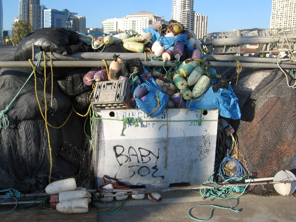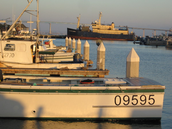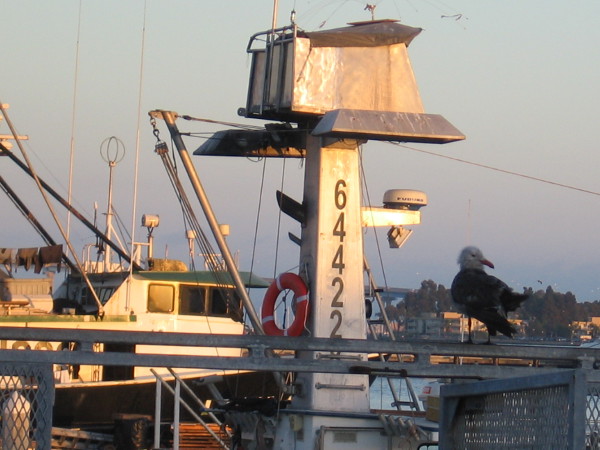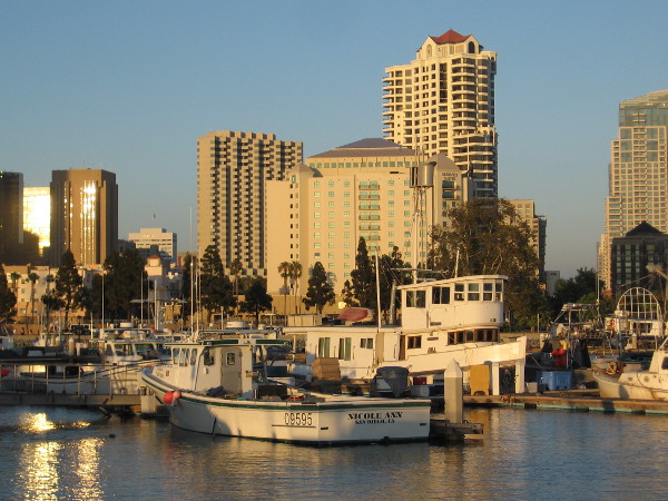 Today, a little before sunset, I had another magical walk down the G Street Pier. Sunlight sprinkled stars upon the water. Slanting light reflected from a jumble of fishing boats; it silvered the downtown skyline.