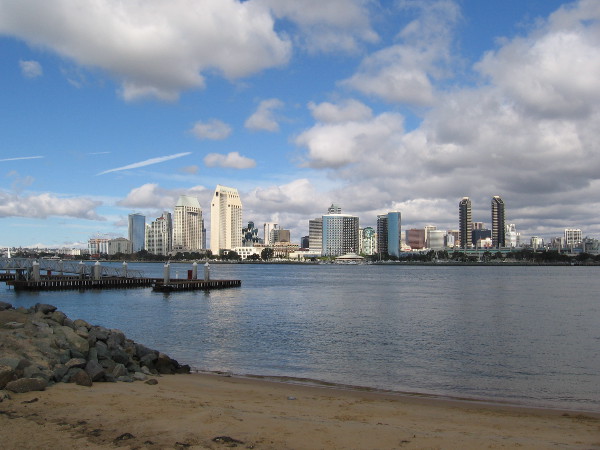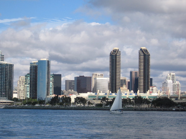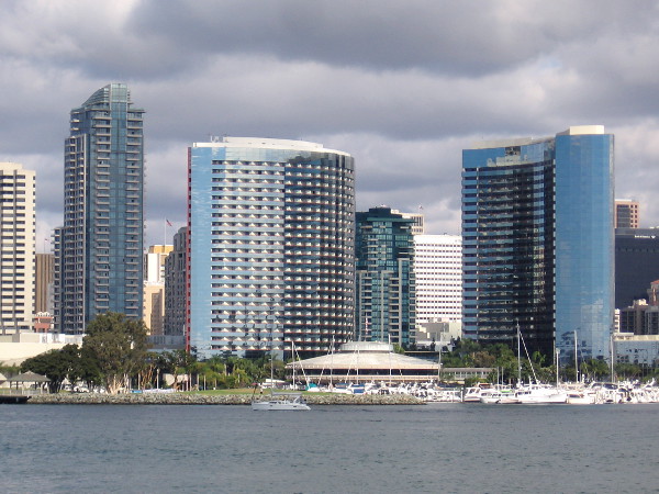 On my way from the Coronado Ferry Landing to my favorite bench at Tidelands Park, I watched as moving clouds seemed to transform the beautiful downtown skyscrapers into a shining, ever-changing dream. I took many photos as I went.