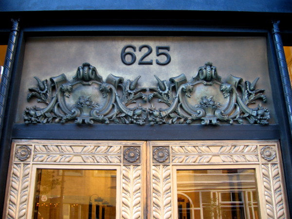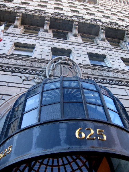 Front of the John D. Spreckels Building as seen from across Broadway.Pointing my camera upward for a cool photo.Beautiful ornamental artwork at the door of 625 Broadway in San Diego.Elegant old clock mounted on corner of the John D. Spreckels Building.This classy historic high-rise adds unique flavor to a shiny modern city.