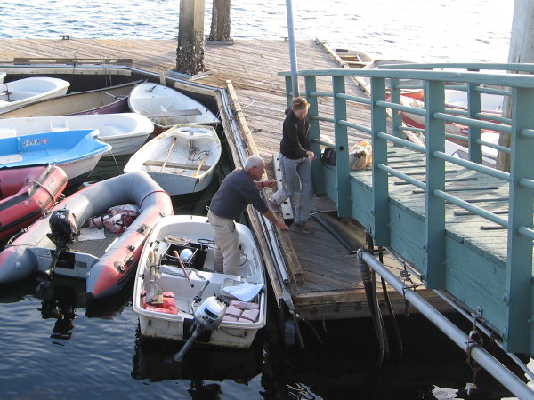 Fisherman heads to a boat in Tuna Harbor.Ramp down to docks in San Diego’s Tuna Harbor.Hyatt, Marriott and Hilton rise behind Tuna Harbor fishing boats.A number of fishing vessels docked inside San Diego’s Tuna Harbor.This typical small boat is part of the large local fishing fleet.Colorful floats of different sizes tangled over the railing along edge of the G Street Pier.Fishing boats docked in Tuna Harbor next to downtown San Diego.Turning a bit to the right. Lobster traps are lined up on a Tuna Harbor dock.Fishermen sort sea urchins from large tank, to be sold at nearby public fish market.Gazing down one dock at a line of fishing vessels in San Diego.Small boat painted with various names, including Rambo!A clutter of work gear all along the wooden dock.Downtown high-rises in the blue sky behind a Tuna Harbor boat.USS Midway aircraft carrier museum can be seen beyond the fleet of fishing vessels.Sun, wind, salt water and frequent use take a toll on these hard-working boats.I believe this is an old Navy boat which has been converted for civilian purpose.A couple more fishing boats tied up in beautiful San Diego Bay.Many boats are out on a Friday afternoon, seeking fresh fish for Saturday morning market.