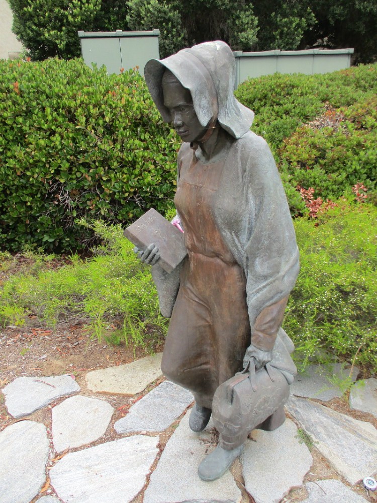 Students at UC San Diego’s Marshall College might encounter her as they proceed down the Ridge Walk. And if they pause to use curious eyes, they can see her humanity and read her words.