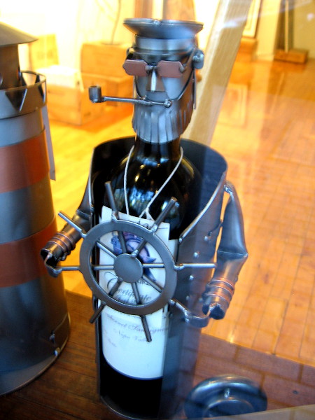 T-shirt proclaims Being Normal is Boring in window of IT’SUGAR Candy Store.A wine bottle has been converted into a salty sea captain at the Michael J Wolf Fine Arts gallery.A dish towel at Bubbles Boutique reminds everyone to be nice to your kids–they choose your nursing home.Frida Kahlo socks in the window of Find Your Feet. Viva La Vida!Art by prolific local muralist Gloria Muriel in the window of Sparks Gallery.