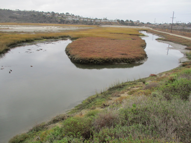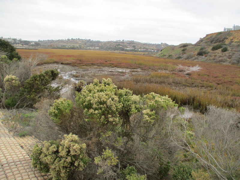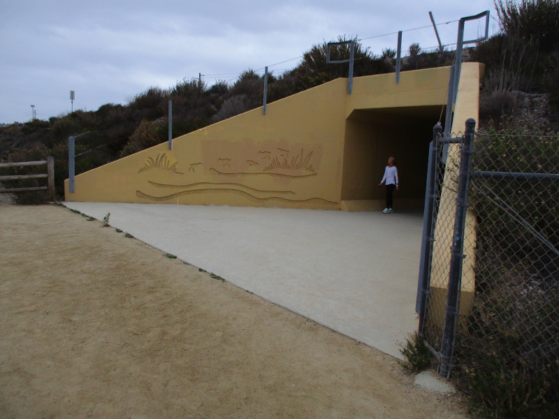 I proceeded from the murals at Harbaugh Seaside Trails (near Highway 101 at the north end of Solana Beach) down the main dirt trail. The trail turned, passed through a tunnel under the railroad tracks, and entered San Elijo Lagoon Ecological Reserve.