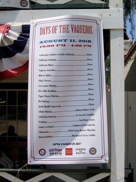 Today, after I checked out the San Diego Cup racing at Mission Bay, I headed to Old Town San Diego State Historic Park to see if anything interesting was going on. Somehow I’d forgotten that Stagecoach Days are celebrated in Old Town on summer Saturdays, and so I was surprised and happy to stumble upon Days of the Vaqueros!