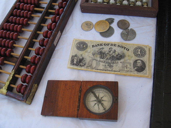 Our tour now heads toward restored buildings that stand on the southwest side of the plaza.We enter Casa de Machado y Silvas, where today visitors can view the small Commercial Restaurant museum.Our tour guide talks about tiny San Diego during the Mexican rancho period. Trade goods were acquired from merchant ships in exchange for cattle hides, which were called California Banknotes.