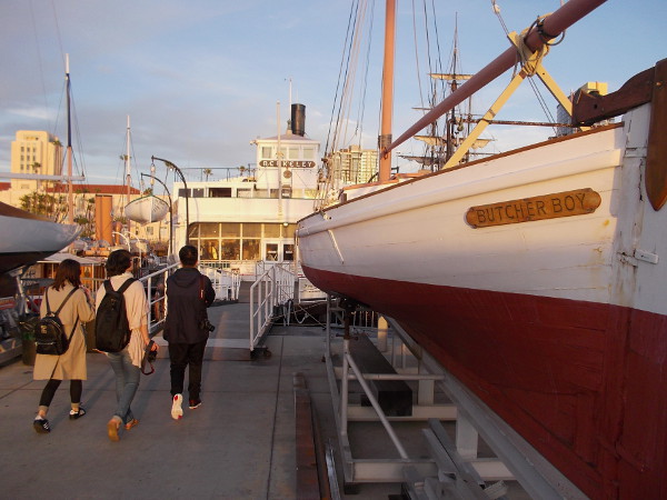 If you are curious, and want to see historical photos of Butcher Boy under sail, and a detailed description of the restoration work now being done, please read the Maritime Museum of San Diego’s blog by clicking here.
