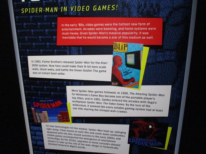 Visitors can see dozens of pieces of original art used in the creation of the comic books, and important props from many of Spider-Man’s immensely popular movies. The superhero’s appearance on television and in video games is also documented.