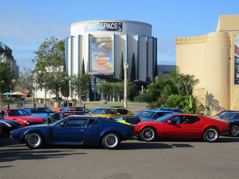 I was walking through Balboa Park near the San Diego Automotive Museum when I spied a bunch of Pantera sports cars. And the proud owners were taking a group photograph.
