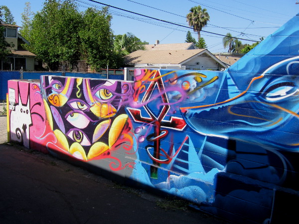 I’ve often admired this super colorful mural while driving down 30th Street. As the years have passed, I’ve also noted that the images have changed. After a little searching on Google, I see this mural is part of the “North Park Mural Project” and I identified a few of the artists. Check out the captions!