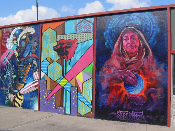 I stumbled upon a collection of colorful murals the other day while walking through Barrio Logan. A project of The Nest, founded by San Diego artist Jorge Mendoza, this very cool street art can be found near the intersection of National Avenue and Evans Street, a block southeast of Chicano Park.