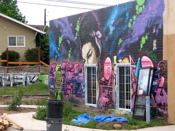 Check out these photos of two building walls in Hillcrest. Both border a short driveway and tiny parking lot on University Avenue, next to The Merrow, a bar that features great live music, and Tabletop Commons, a cool eatery where diners can also play a huge assortment of games.