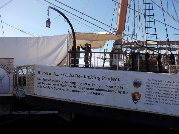 Today I boarded the Maritime Museum of San Diego’s world-famous Star of India. The lady in the ticket booth informed me that the deck replacement began about a week or so ago!