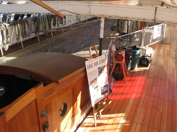A nice docent allowed me to walk up the steps almost to the poop deck so I could get a good photograph. As you can see, the first section of the deck has been removed. I also noted that the saloon underneath has been carefully converted into a work area.