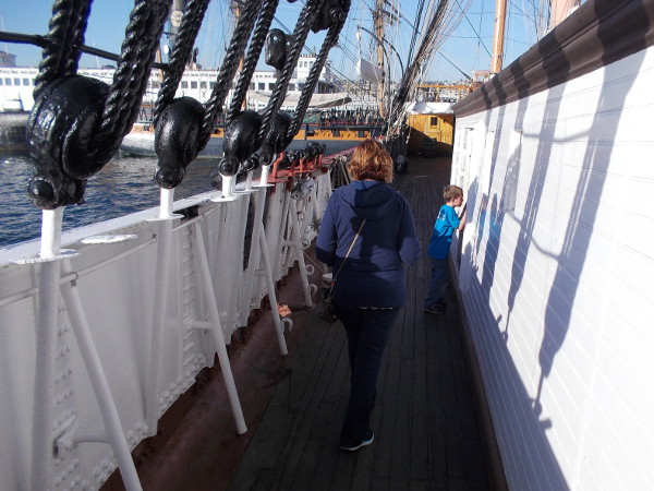 Right now, the main deck and poop deck need replacing. The wooden decks have come to the end of their lifetime. The Star of India “was recently awarded a $192,000 National Parks Service Maritime Heritage Grant, one of very few such awards and a testimony to both her historical significance and to the viability of the project for extending her life. However, these funds are available to Star of India only if they are matched by an equal amount contributed by those who love her and want to see her sail for generations to come.”
