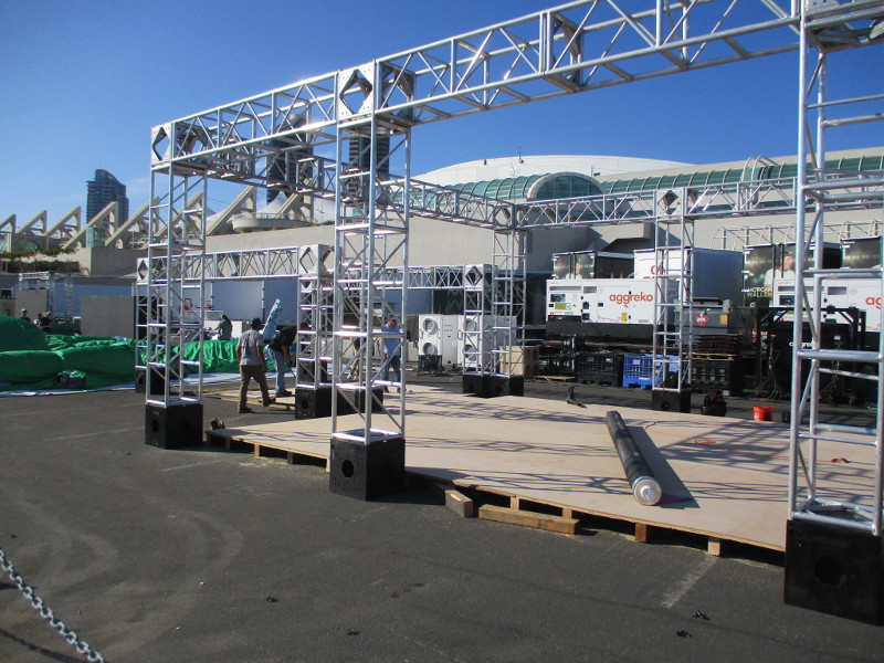 FX has begun building their Comic-Con offsite in their usual spot–the grass in front of the Hilton San Diego Bayfront hotel.