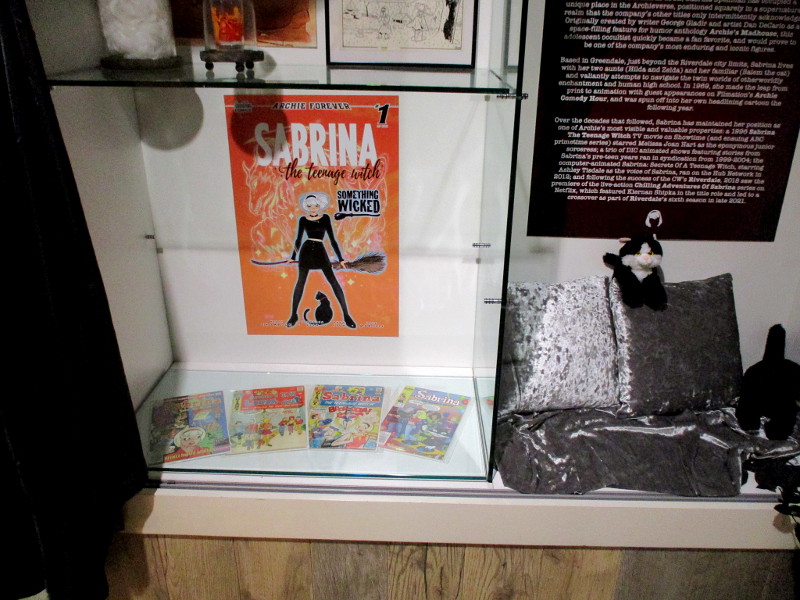 Almost 10 am when the doors open! The Comic-Con Museum occupies the historic Federal Building in Balboa Park, which years ago was home to the Hall of Champions. The building was created for the 1935 California Pacific International Exposition.This is just the beginning! The Comic-Con Museum will continue to develop their space in the coming few years. The new museum promises to become ever more incredible.Many generous donors and benefactors have helped to make the Comic-Con Museum a reality, including the David C. Copley Foundation and the Conrad Prebys Foundation.The first exhibit I saw on the ground floor is called Art of the Comic-Con Masquerade. It celebrates the Comic-Con tradition of cosplay. These elaborate superhero costumes were made by fans!My favorite exhibit is titled Gene Roddenberry: Sci-Fi Visionary. Original costumes, art and props are displayed from Star Trek. The life and creative genius of Roddenberry is remembered with his personal letters and more. This exhibit is so fantastic I’ll be blogging about it separately coming up!Another substantial exhibit, Eight Decades of Archie, celebrates the cultural heritage of Archie Comics. I had no idea that Sabrina the Teenage Witch, before television, was a comic book series published by Archie ComicsCardboard Superheroes were created by two local youth. Their cool creations debuted in the nascent Comic-Con Museum a couple years ago during Balboa Park’s December Nights.Looking up at the second floor galleries. When the Federal Building was home of the Hall of Champions, the Breitbard Hall of Fame plaques decorated those upper walls.Admiring original works of famed artist Charles Samuel Addams, who is probably best known for creating the Addams Family characters.Looking down from the second level toward the museum entrance.An inspirational exhibit is titled Out of the Darkness: Comic Art in the Times of COVID. Youth art created during the COVID-19 lockdown is featured. It is presented by A Reason To Survive (ARTS), an organization in National City that works to uplift young people.Some really great art from San Diego’s South Bay community.In one of the Comic-Con Museum’s classrooms is a creative work area. During the opening weekend, an exhibit here demonstrates the Cosplay Creator’s Lab.If you’d like to support San Diego dreamers, fans and artists, here’s one way!Sewing machine and dress.Check out this incredible, wearable Grommash Hellscream costume! It was created by Mike Biasi.In the lower level of the museum, near the auditorium, you’ll find another Art of the Comic-Con Masquerade display. These costumes were all part of past Comic-Con Masquerades.And check this out! In one corner of the Comic-Con Museum, where the old Hall of Champions café used to be, there’s the PAC-MAN Arcade, complete with playable games and historical exhibits!Designs, drawings and documents from back when Pac-Man was created, in 1980. A cultural icon (and Comic-Con Museum Character Hall of Fame inductee) was born!Is this cool, or what?