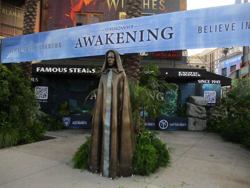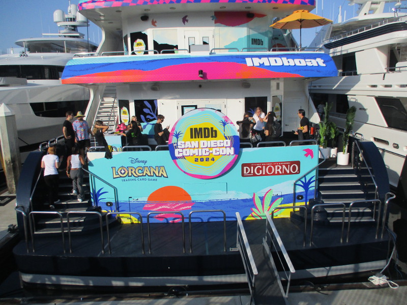 An early Thursday morning line for Paramount+ offsite The Lodge.The Star Trek and Dr. Who offsite Friendship is Universal still has work to do.Unknown 9 Awakening statue appeared overnight, seemingly.Unknown 9 Awakening video game graphics at Lou and Mickey’s.Gobbling some breakfast near a vampire and a witch.BoxLunch Collective setting up a canopy on MLK Promenade.I wonder what’s in this box?I hope the Bathroom Battlestation doesn’t roll away!The Mr. Beast Labs toxic waste truck has finally arrived. I got a photo over the high fence.Why aren’t these guys wearing hazmat suits?Demon Slayer cosplay by the Hot Wheels truck!Dragon Ball cosplay.Waiting in line to board the Voodoo Ranger. Kinda early for beer, isn’t it?IMDb Boat decked out for San Diego Comic-Con 2024.I turned around for this quick photo.Star Wars cosplay on the Harbor Drive pedestrian bridge.Lots of fans were arriving from the hotel buses.Walking along near the Gotham Ice truck.Fans heading toward the San Diego Convention Center on early Thursday morning for Comic-Con 2024.Star Wars cosplay. Very cool!Donut Bar pop culture treats outside the Provisional on Fifth Avenue.Star Trek cosplay.Loki cosplay.More cool Star Wars cosplay!